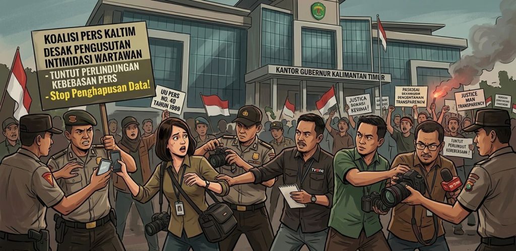 Fajarnews.co,SAMARINDA – Insiden dugaan represif terhadap jurnalis terjadi saat peliputan Aksi 214 di kawasan Kantor Gubernur Kalimantan Timur. Sedikitnya empat wartawan dilaporkan mengalami intimidasi hingga