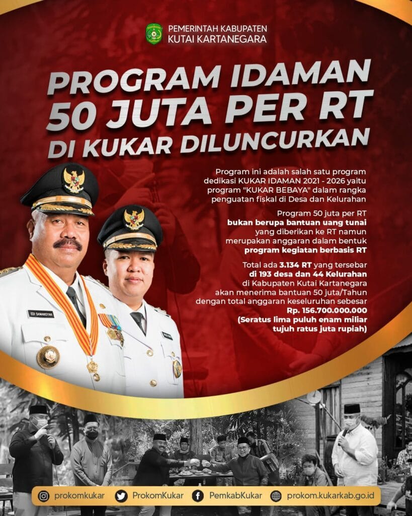 Fajarnews.co, TENGGARONG – Dinas Pemberdayaan Masyarakat dan Desa (DPMD) Kabupaten Kutai Kartanegara (Kukar) terus mendorong pencapaian pembangunan yang inklusif melalui berbagai program pemberdayaan masyarakat. Salah satunya adalah program pelatihan berbasis Rukun Tetangga (RT), yang dirancang untuk meningkatkan kapasitas warga dengan alokasi anggaran sebesar Rp50 juta per RT. Pelatihan ini bertujuan untuk memperkuat ketahanan sosial dan ekonomi masyarakat desa.