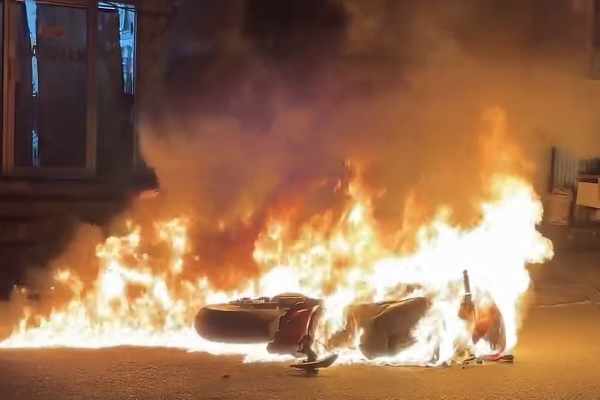 Benturan keras membuat kedua kendaraan terjatuh di badan jalan. Ducati Panigale bahkan terbakar setelah menghantam tiang di depan sebuah laundry.