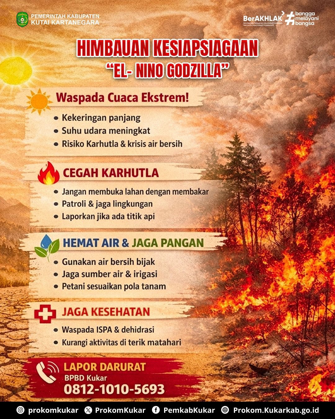Fajarnews.co, Kutai Kartanegara, Minggu (12/04/2026) – Pemerintah Kabupaten Kutai Kartanegara (Kukar) mengeluarkan surat edaran terkait kesiapsiagaan menghadapi fenomena El Nino ekstrem yang diprediksi terjadi pada 2026. Edaran tersebut ditujukan kepada seluruh perangkat daerah, camat, lurah/kepala desa, hingga masyarakat luas.